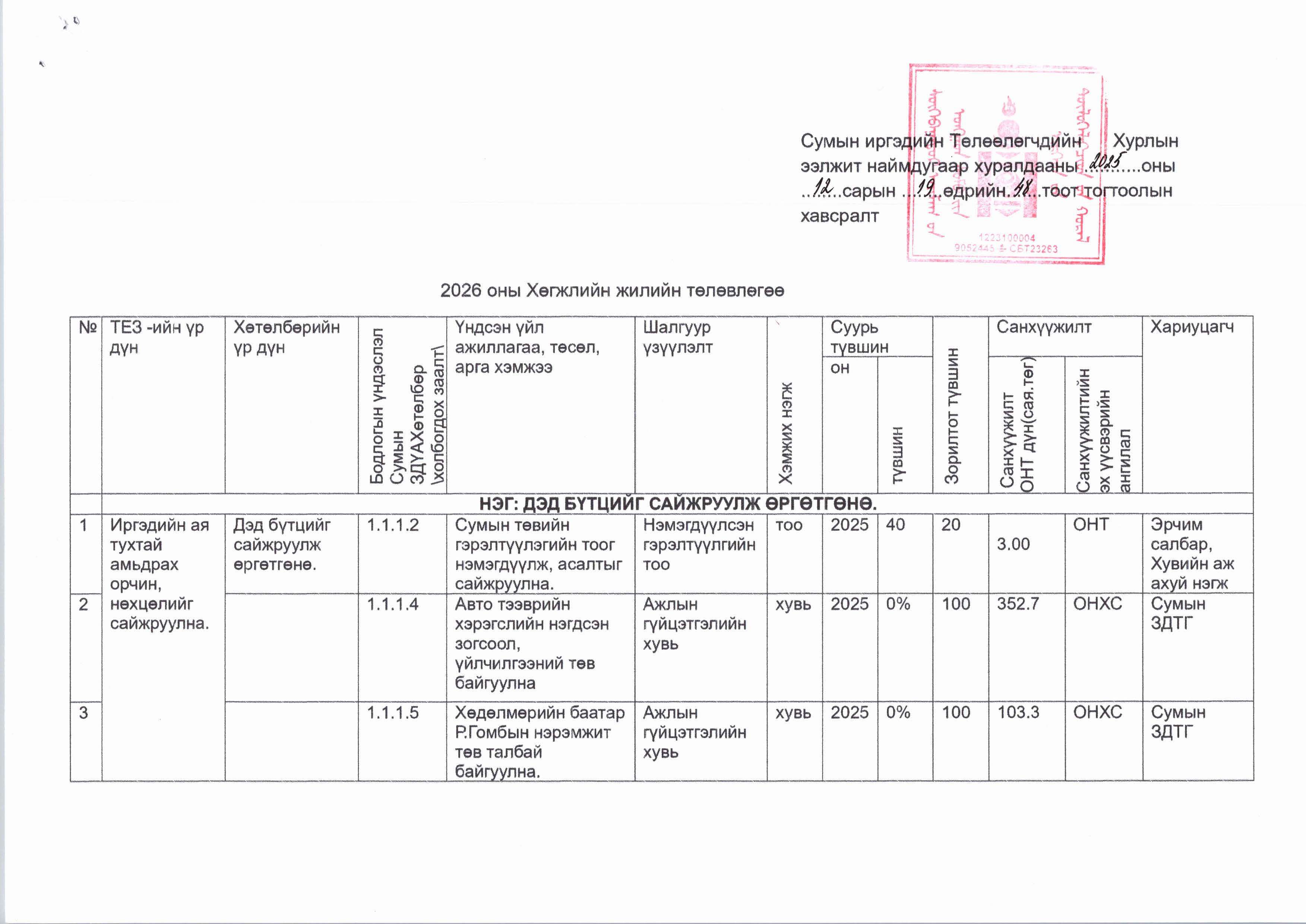 Сумын 2026 оны "Хөгжлийн жилийн төлөвлөгөө" батлагдлаа.